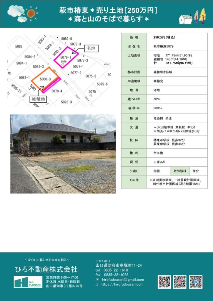 萩市椿東にある売り土地です