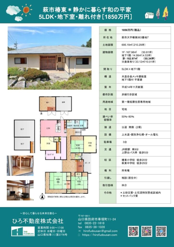 萩市椿東、維新ロードの近くにある
