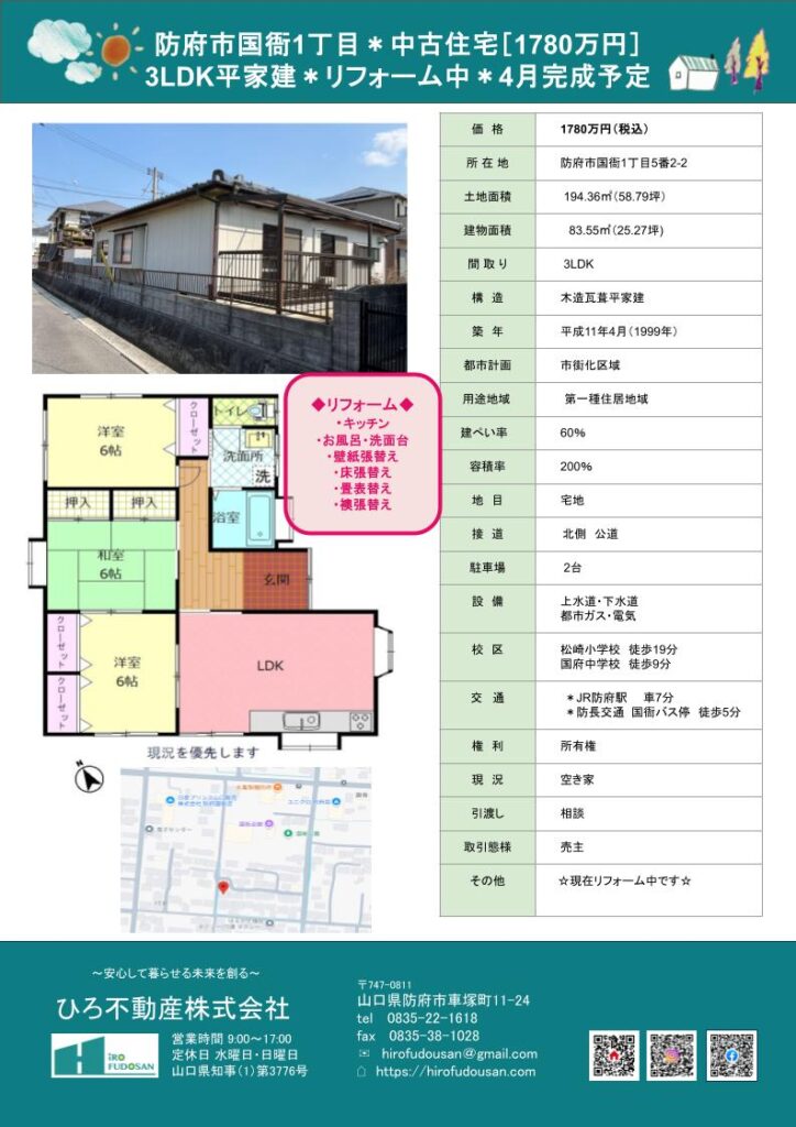 防府市国衙1丁目にある中古住宅です