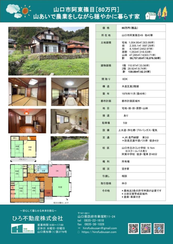 山口市阿東篠目にある中古住宅です。